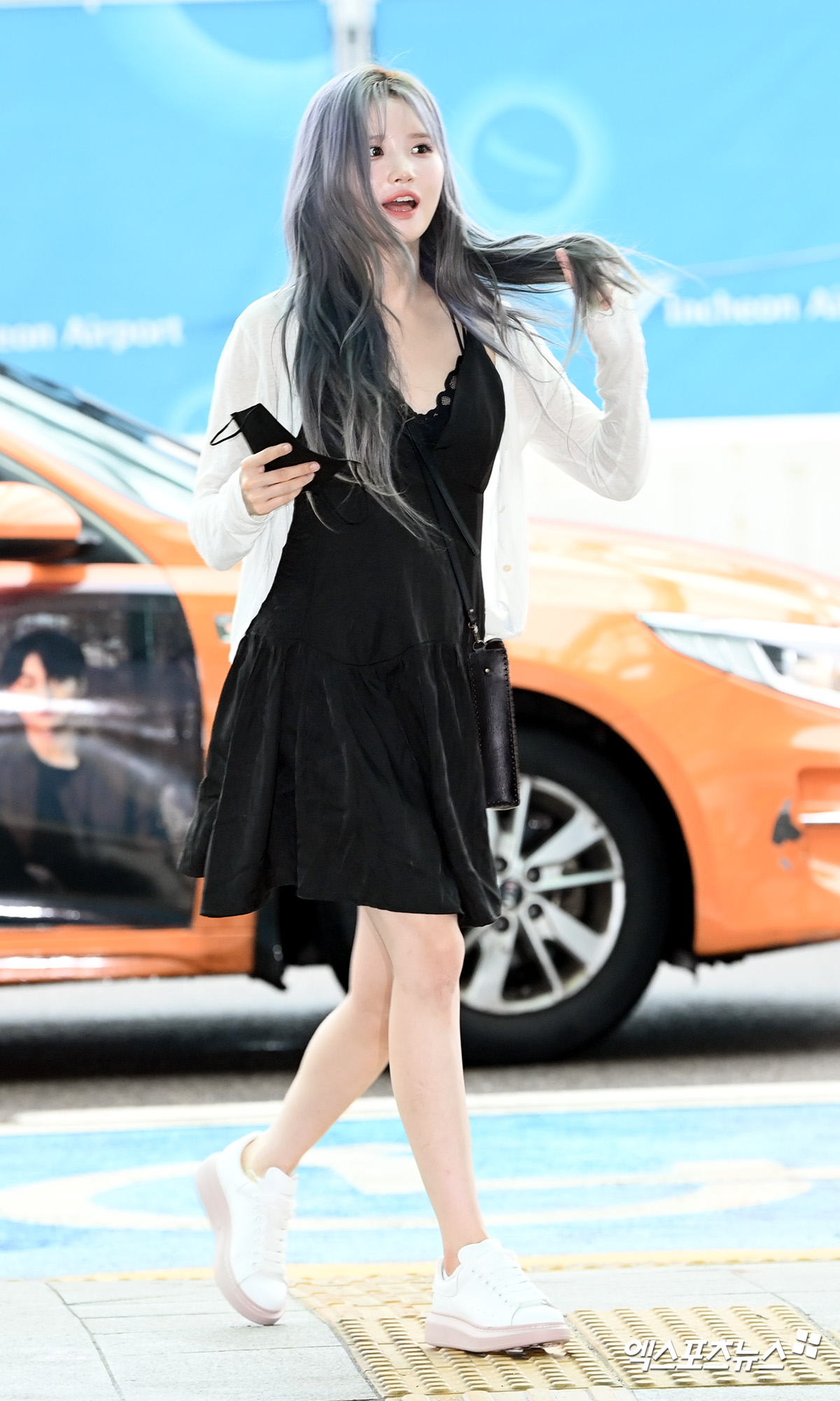 걸그룹 프로미스나인 송하영이 출국장으로 향하고 있다.