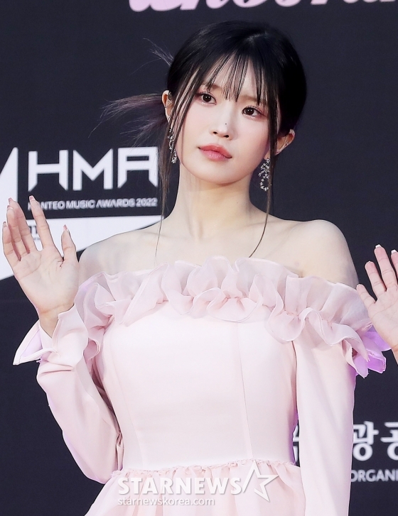 걸그룹 프로미스나인 송하영이 11일 오후 서울 송파구 잠실종합운동장 실내체육관에서 진행된 '30주년 한터뮤직어워즈 2022' 레드카펫 행사에 참석해 포즈를 취하고 있다. 2023.02.11