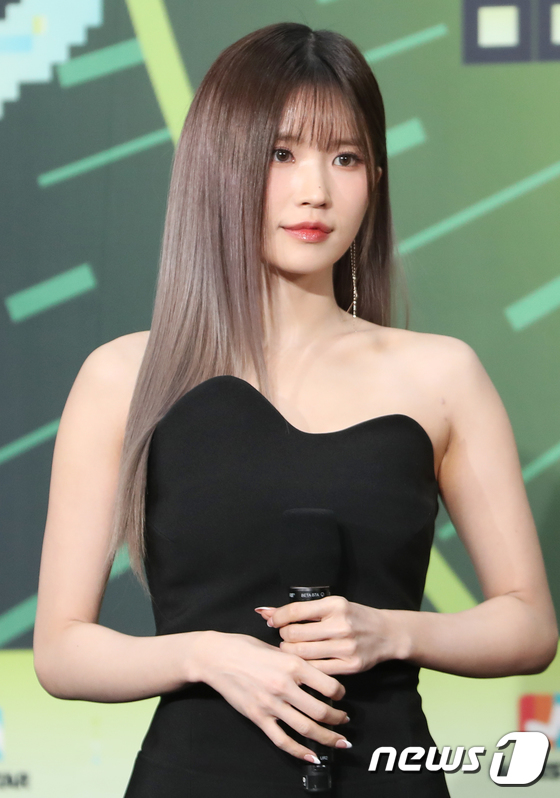 프로미스나인 송하영이 16일 오후 서울 송파구 잠실실내체육관에서 열린 '2022 KBS 가요대축제'에서 포즈를 취하고 있다. 2022.12.17/뉴스1...
